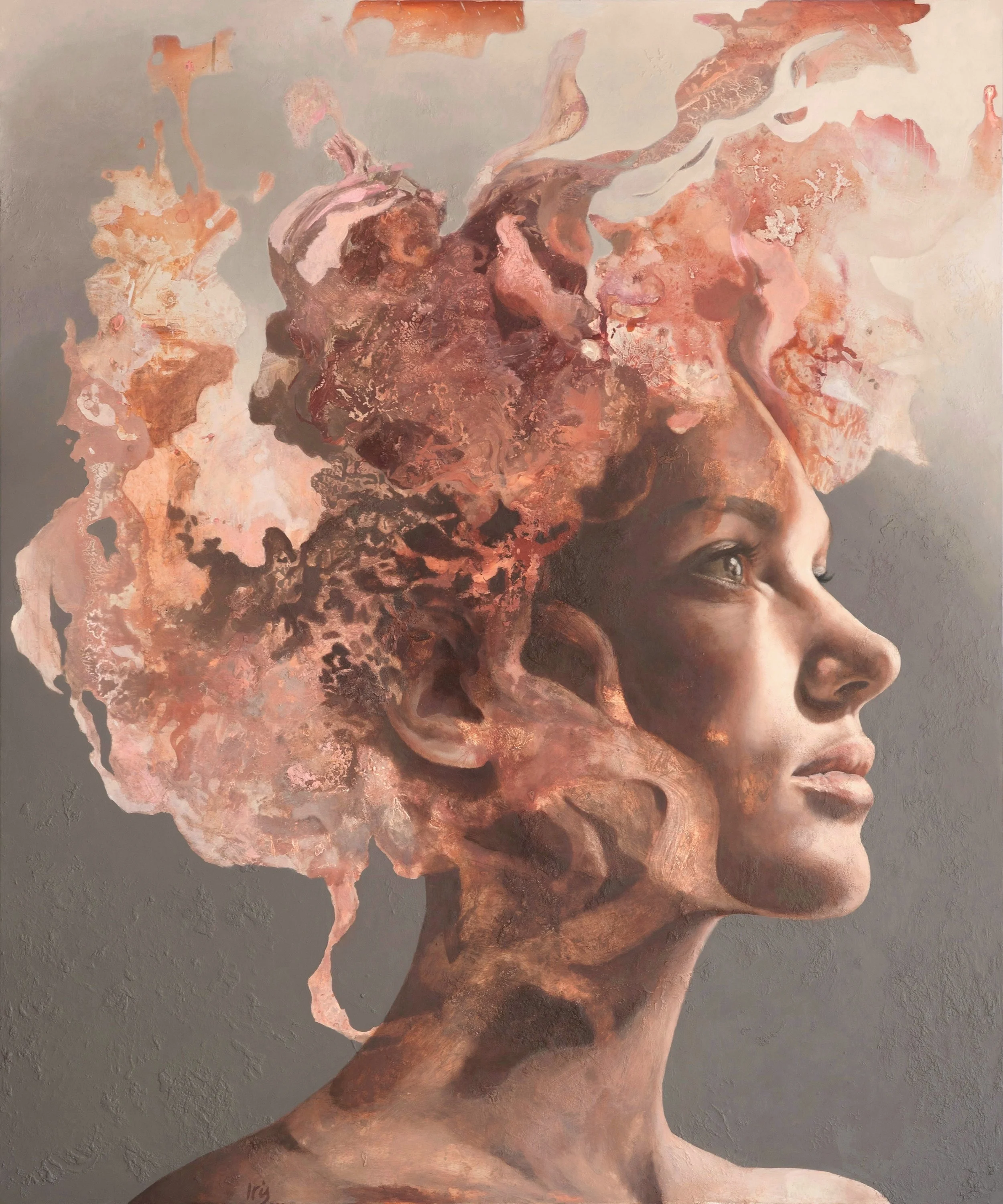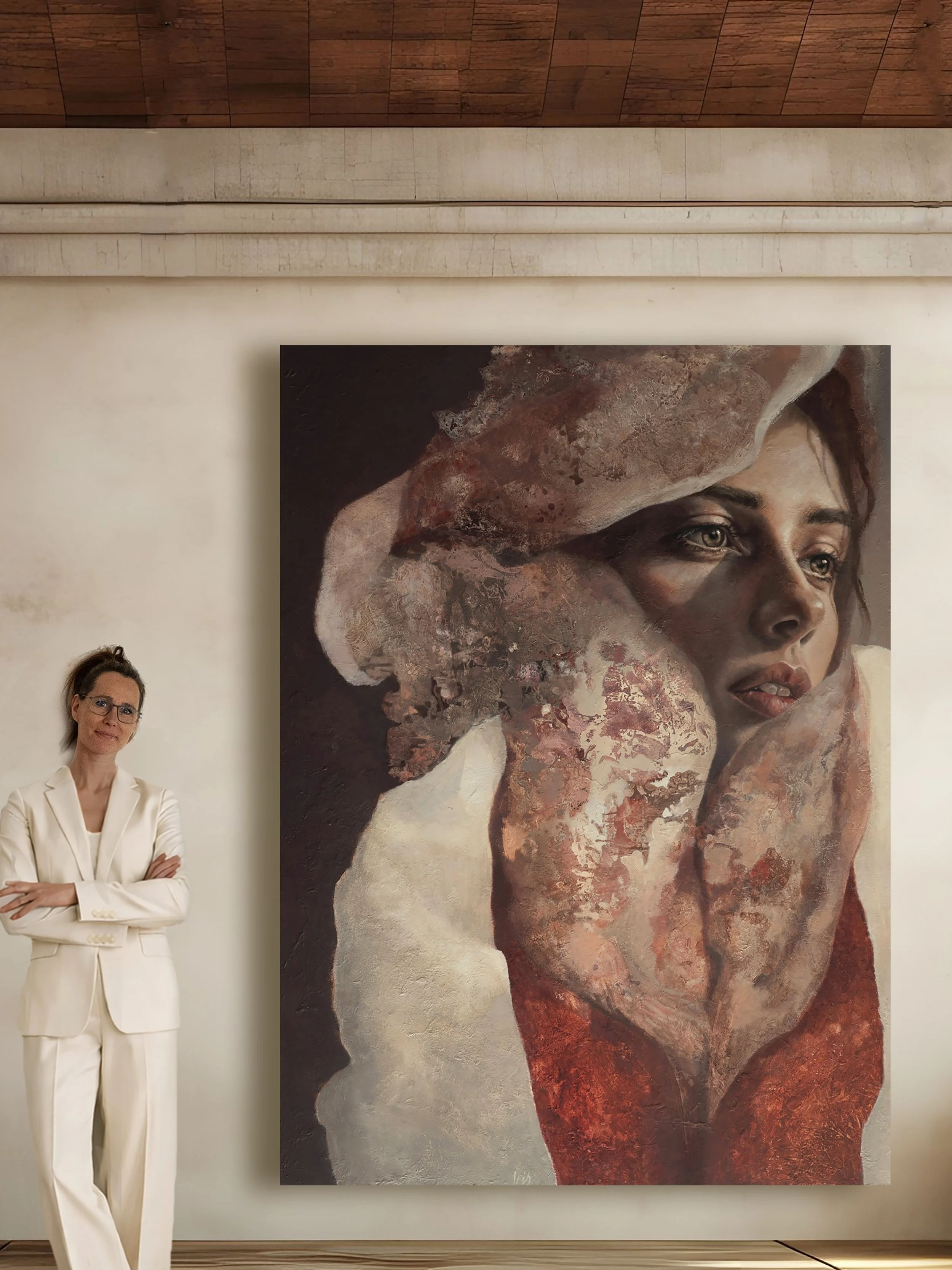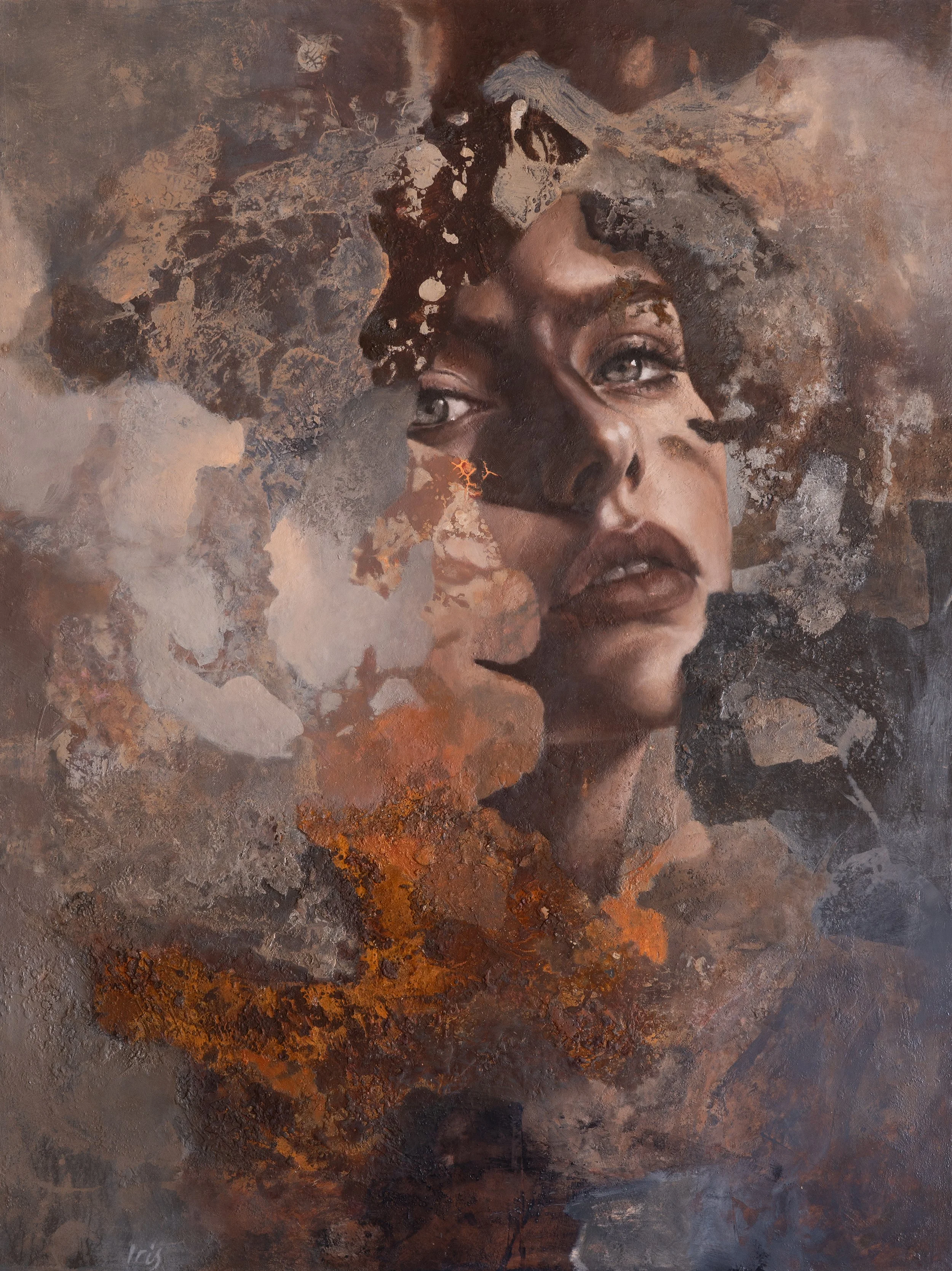 Iris Schreven is a contemporary artist creating layered artworks where the female portrait and abstraction converge. Working on aluminium and canvas, each piece is built through textures, pigments and natural processes, with a distinctive palette of earthy tones, deep contrasts and refined nuances, resulting in powerful, large-scale compositions with depth and presence.